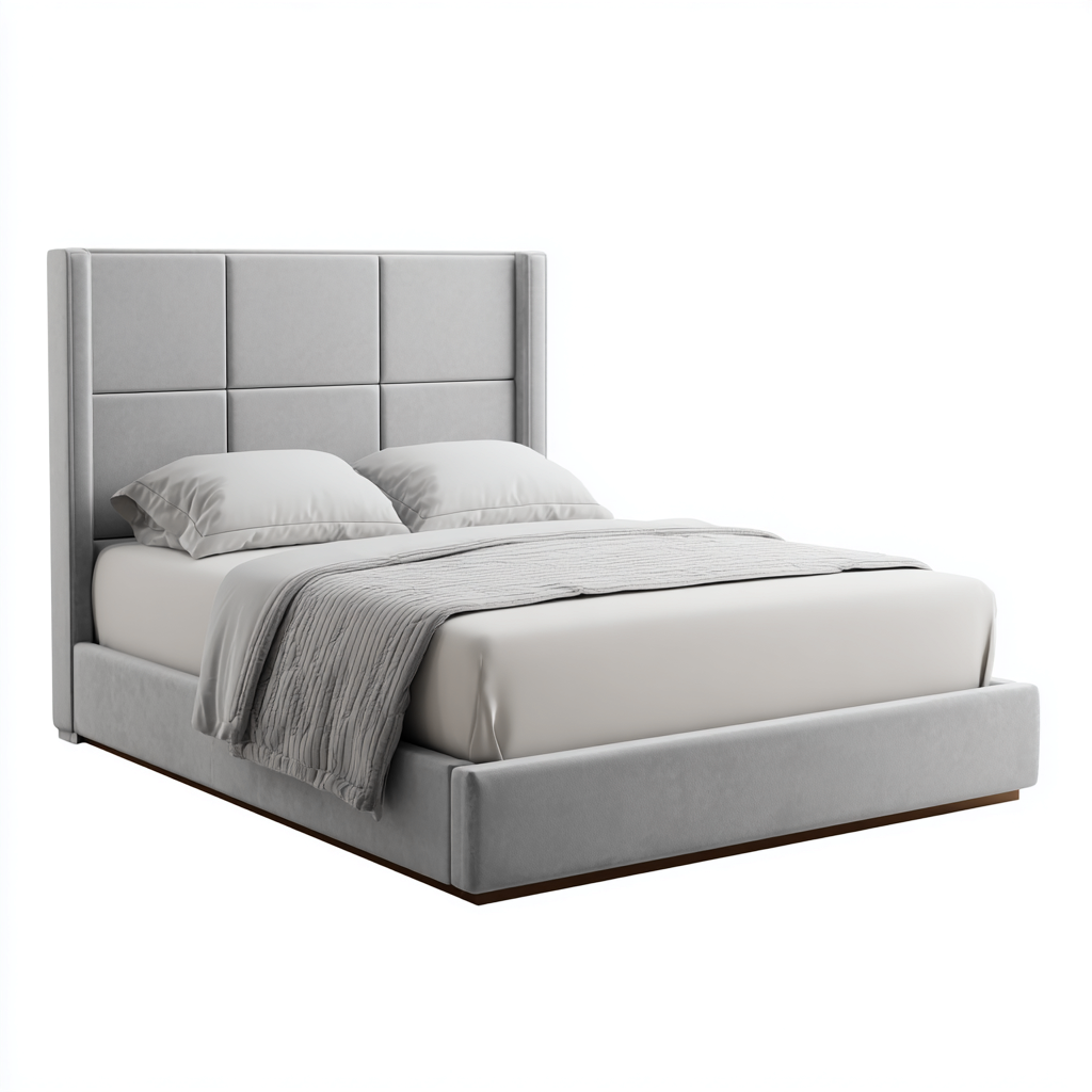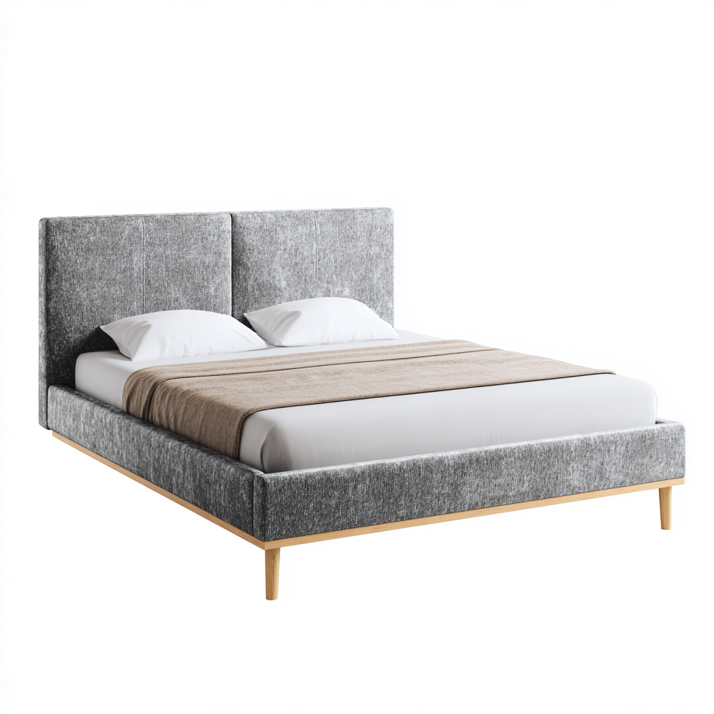 Cama matrimonial tapizada terciopelo 200x160 cm - gris - cabecero alto diseño moderno