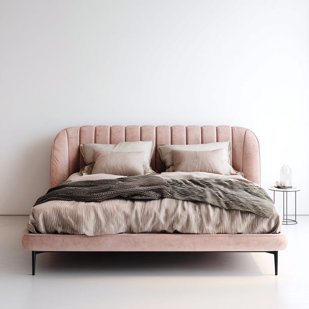 Cama matrimonial tapizada terciopelo metal 200x160 cm - rosa - diseño moderno