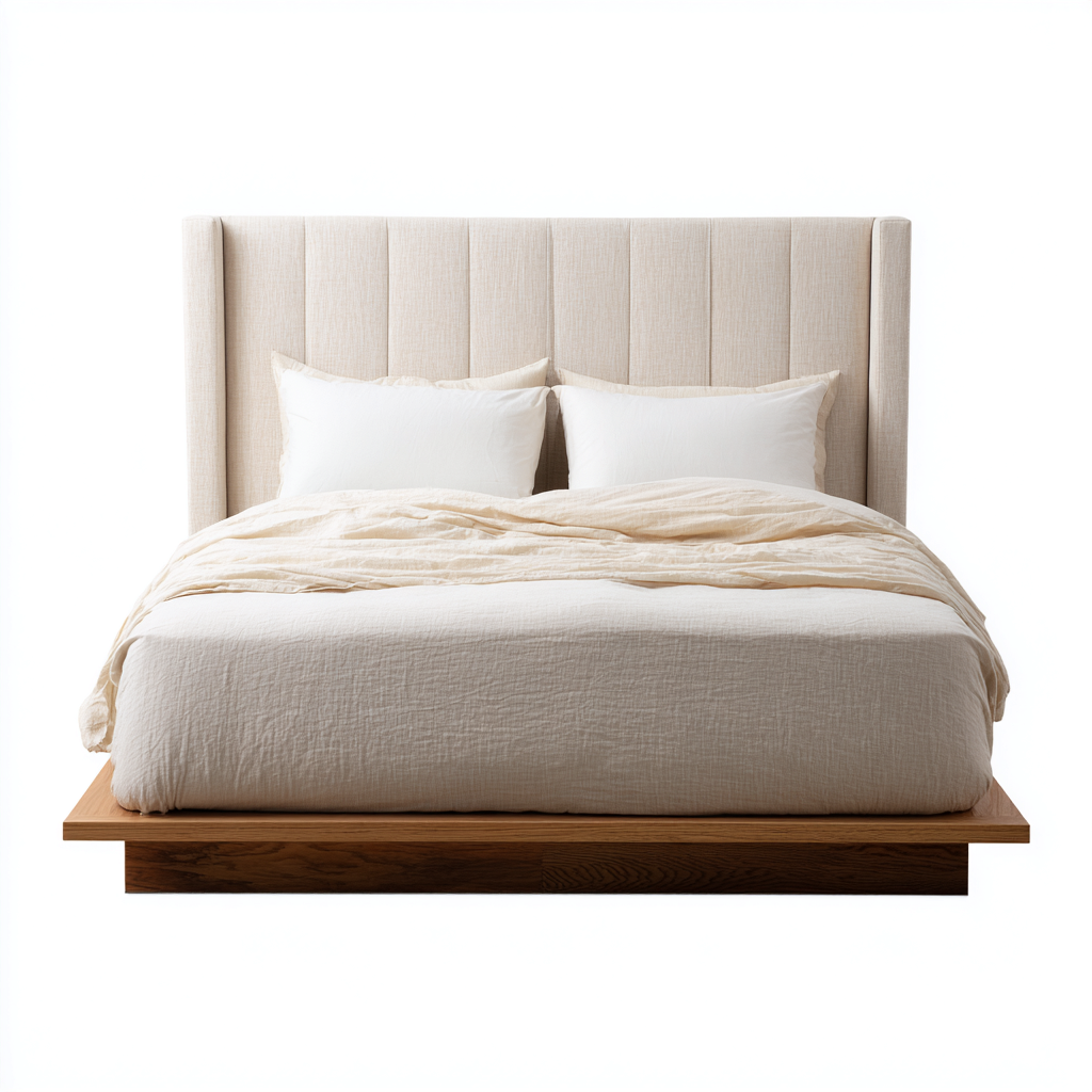 Cama matrimonial tapizada 210x160x120 cm - beige - diseño moderno