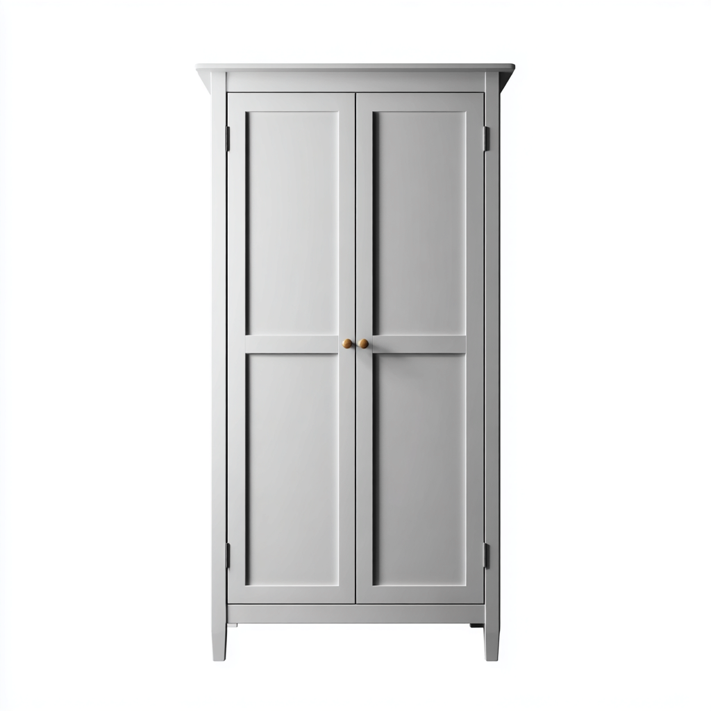 Este armario de dos puertas ofrece una solución compacta y elegante para dormitorios y espacios interiores. Su diseño clásico en gris claro aporta una estética limpia y armoniosa, ideal para ambientes modernos o tradicionales.