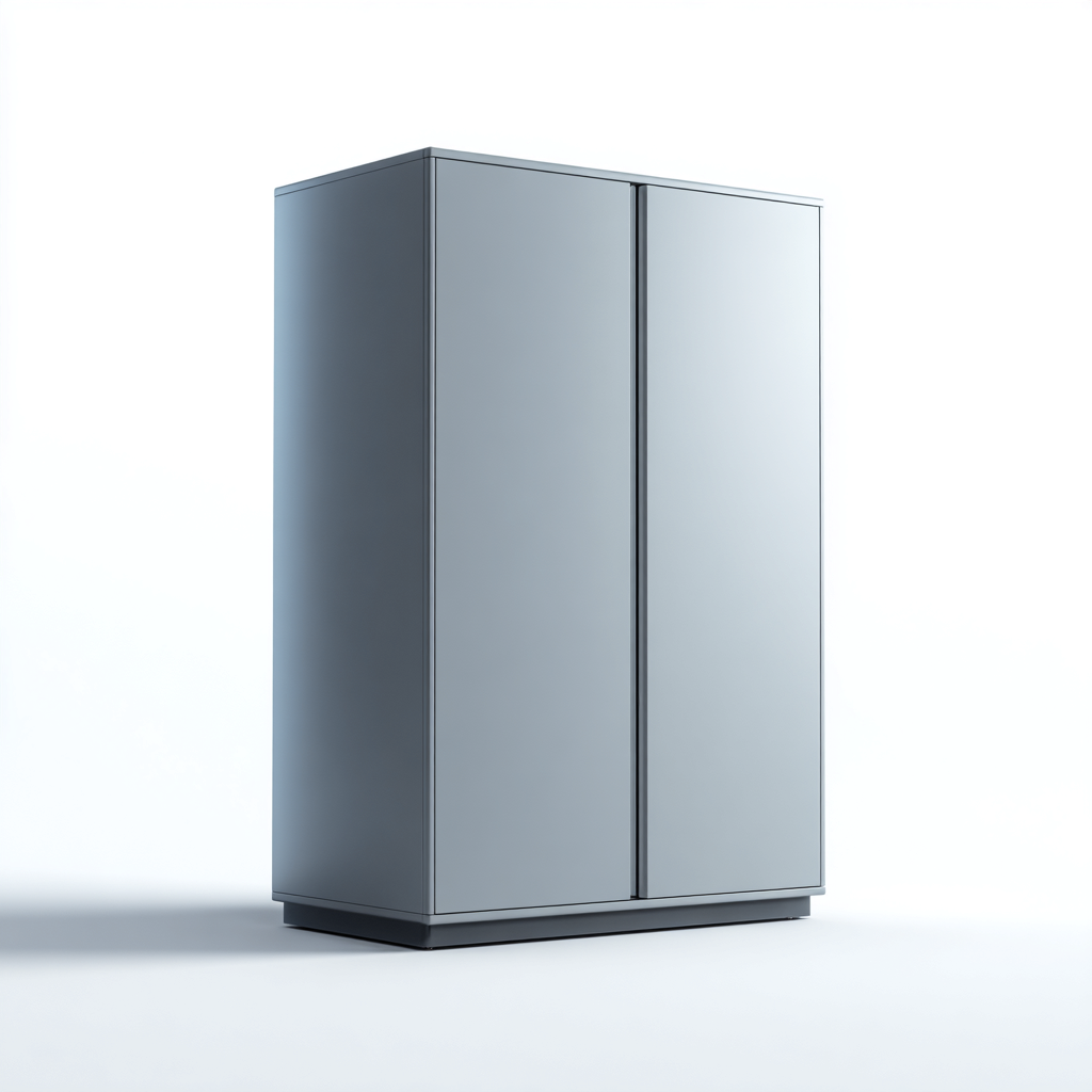 Armario de estilo moderno con líneas limpias y superficie uniforme, adecuado para dormitorios, vestidores o espacios donde se requiera almacenamiento ordenado. Su diseño minimalista permite integrarse fácilmente en distintos ambientes.
