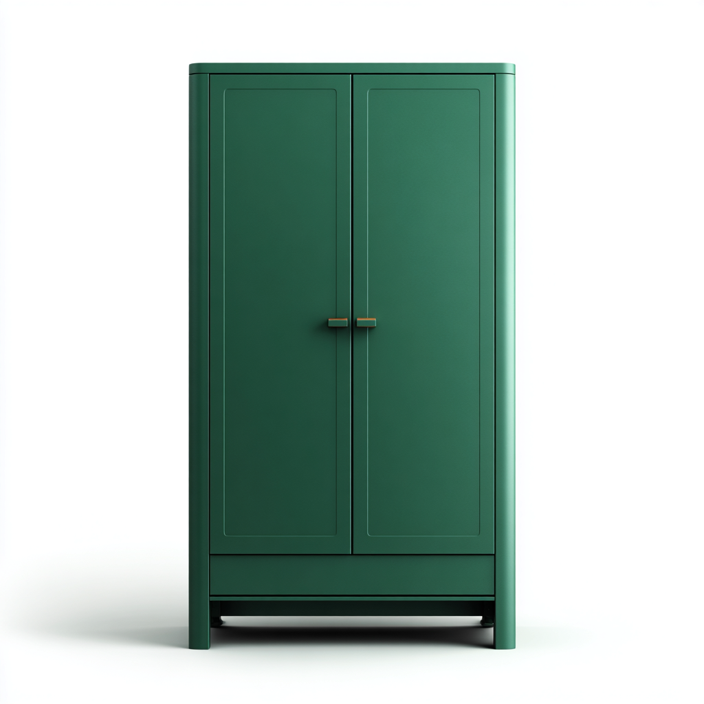 Armario de estilo moderno con acabado uniforme en verde oscuro y bordes suavemente redondeados, ideal para dormitorios, espacios auxiliares o zonas donde se requiera un almacenamiento visualmente limpio y funcional.