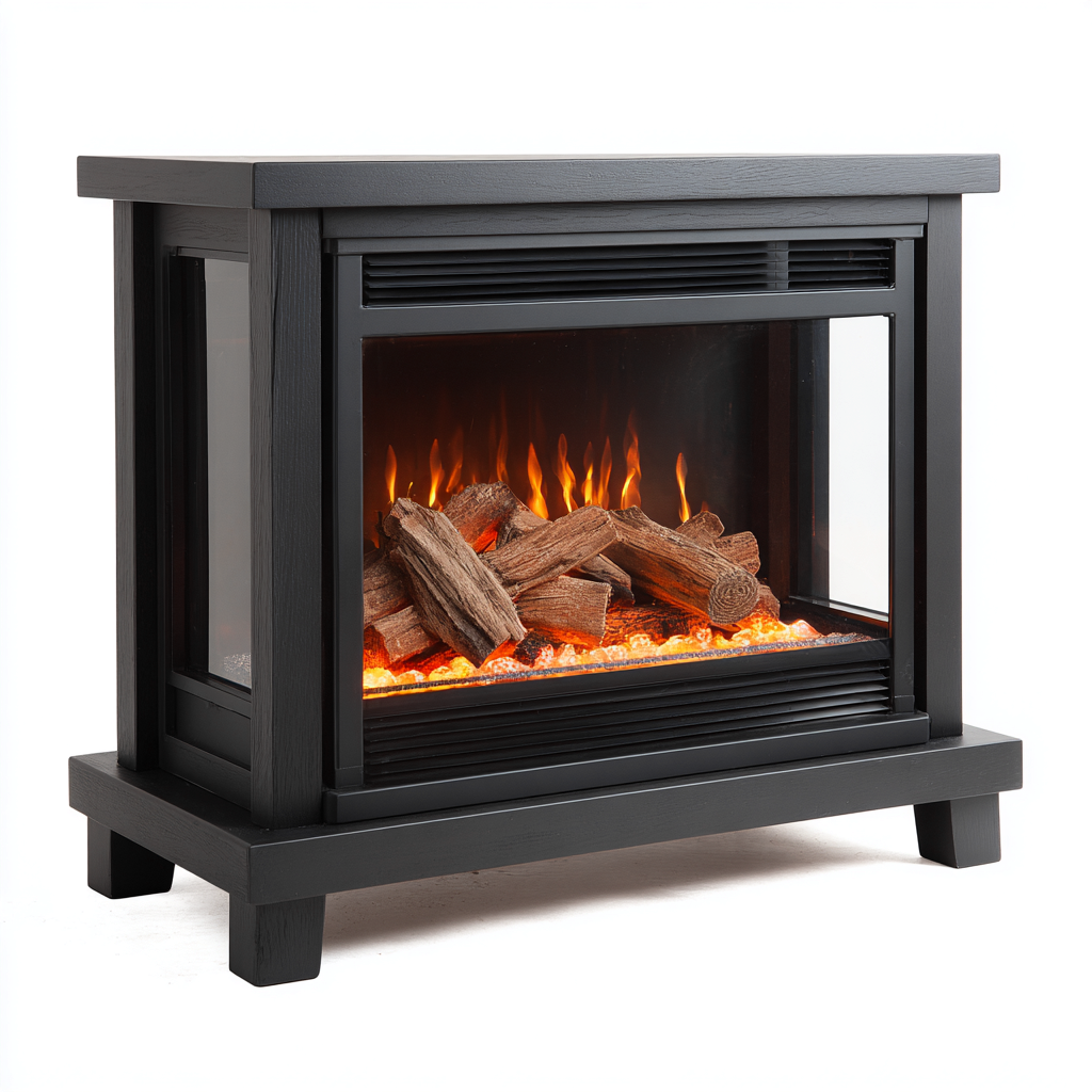 Fabricada con estructura de madera en color negro y paneles transparentes laterales que permiten una visualización más amplia del efecto de fuego. El acabado mate aporta un aspecto elegante y fácil de integrar en distintos espacios.