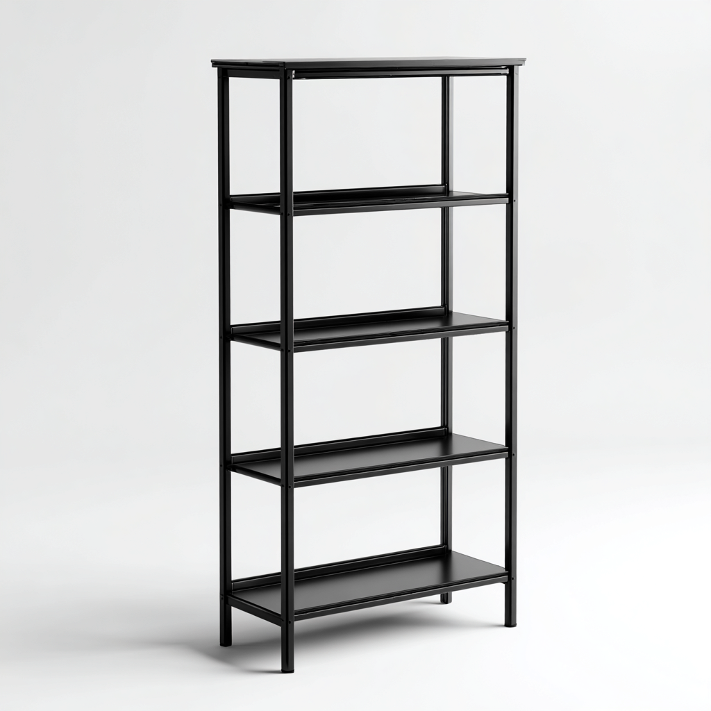 Esta estantería de diseño moderno está fabricada completamente en metal de color negro, ofreciendo una estructura estable y minimalista adecuada para diferentes espacios interiores. Con cinco niveles abiertos, facilita la organización de libros, decoración y objetos de uso cotidiano en salón, dormitorio, despacho o zona de trabajo.