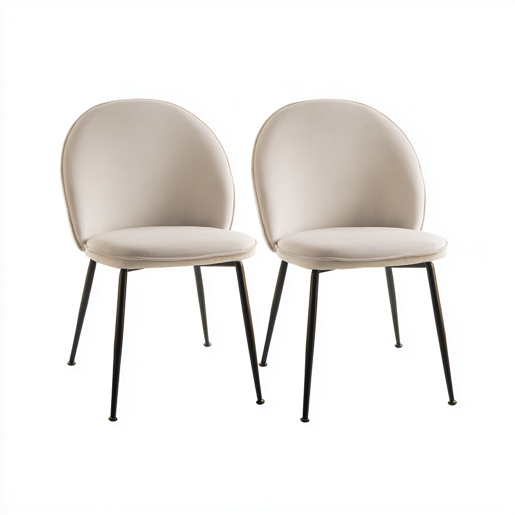 Este juego de 2 sillas de comedor presenta un diseño moderno con respaldo redondeado y una silueta ligera, ideal para comedores, cocinas y otros espacios de uso diario. Su asiento acolchado y su forma ergonómica proporcionan comodidad y estabilidad.